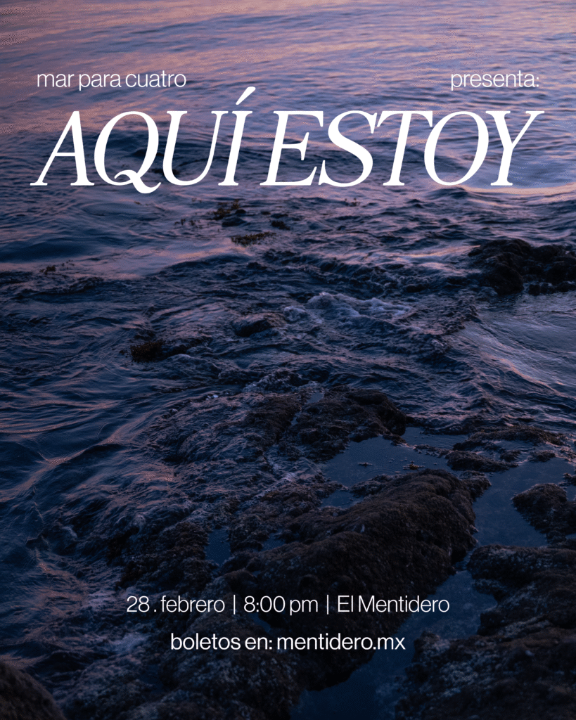 «Aquí Estoy» es el concierto en vivo para presentar el primer álbum conceptual de la banda sonorense «Mar Para 4» donde se busca crear una experiencia inmersiva que haga que el público tenga una justificación clara de lo vivido a lo largo del concierto: El cansancio, adaptación y vivencia entre el mundo digital y físico, donde la saturación de las cosas nos orilla a encontrar espacios tranquilos donde podamos asimilar y entender lo que estamos viviendo tanto interna como externamente.